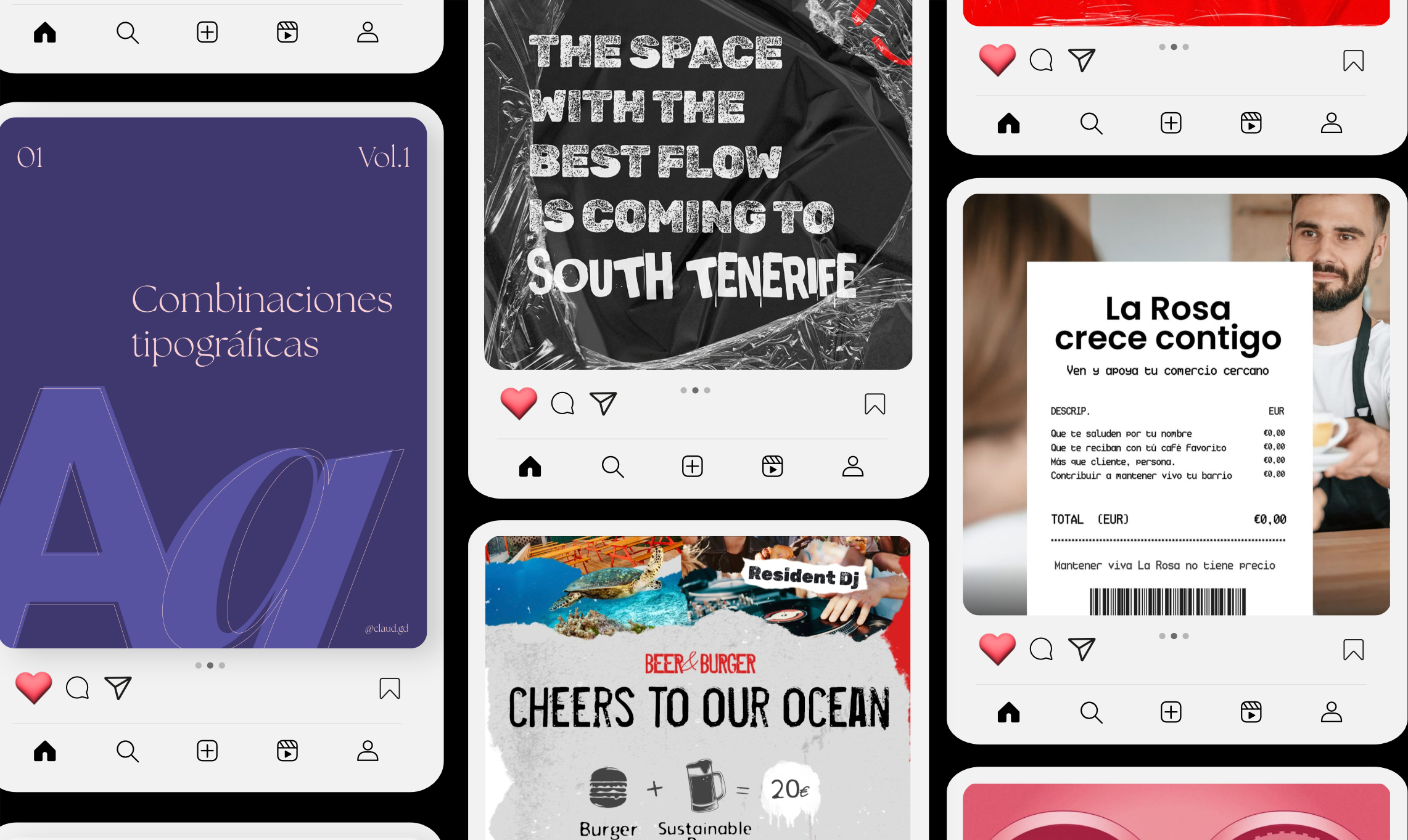 Una muestra reducida de proyectos donde el diseño no es solo forma, sino mensaje. Campañas y piezas gráficas que conectan lo cotidiano con lo emocional, adaptándose a contextos, públicos y objetivos reales.