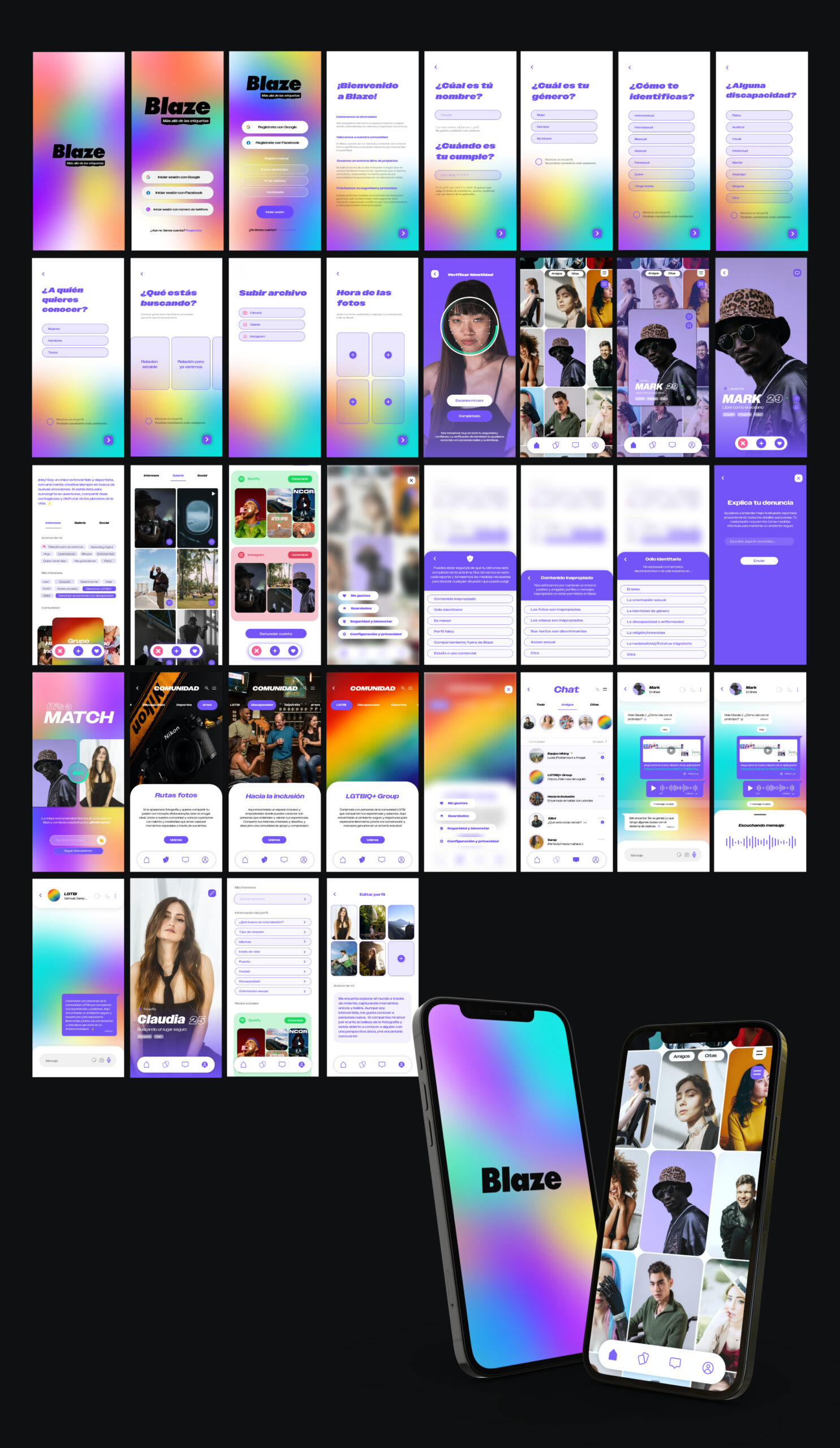 Proyecto de diseño y desarrollo para una app de citas inclusiva y segura. Incluye identidad visual, tono de marca, usabilidad, pruebas con usuarios y un prototipo funcional que demuestra su potencial para crear conexiones auténticas.